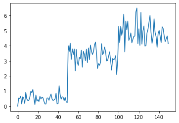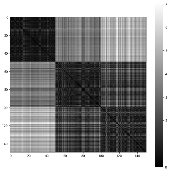 dist_table=np.array([[(((data[i]-data[j])**2).sum())**0.5 for j in range(150)]for i in range(150)])