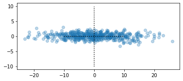 X=np.random.randn(500)*10 # 곱하는 수의 절댓값이 커질수록 직선에 가까워진다.