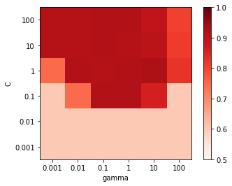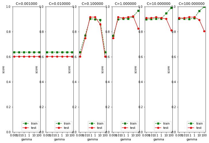 sklearn.SVM. C and gamma 변화 관찰 본문