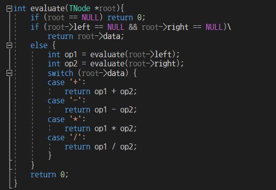 if(root의 left와 right가 NULL이면)root의 data를 반환