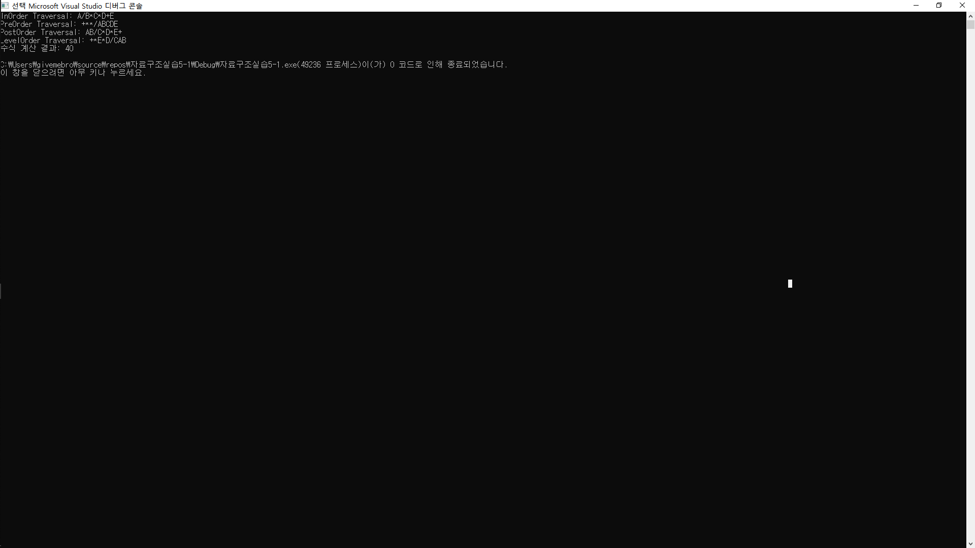 postorder traversal (data(출력)가 맨 뒤(post)에 있음)