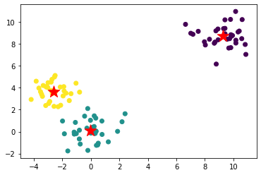 plt.scatter(model.cluster_centers_[:,0],model.cluster_centers_[:,1],marker='*',c='r',s=300)