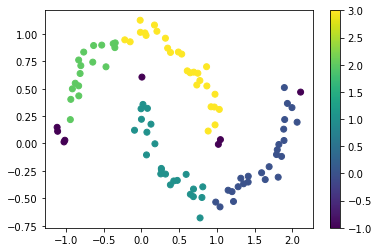 dbscan=DBSCAN(min_samples=9,eps=0.3) # min_samples = 9(반경안에 들어오는 셈플 수)