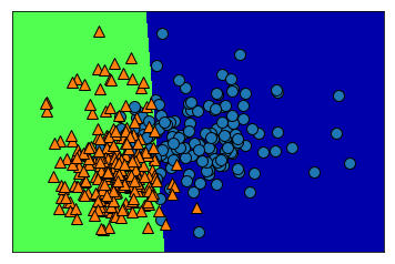 X_train, X_test, y_train, y_test = train_test_split(cancer.data[:,[0,1]], cancer.target)