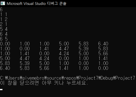 2차원 동적할당으로 좌표간의 거리 구하기 본문
