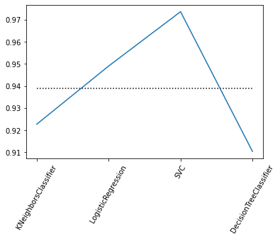 label=['KNeighborsClassifier','LogisticRegression','SVC','DecisionTreeClassifier']