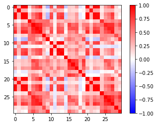 plt.imshow(mat,vmin=-1,vmax=1,cmap='bwr')