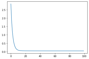 plt.plot(costs[:100])