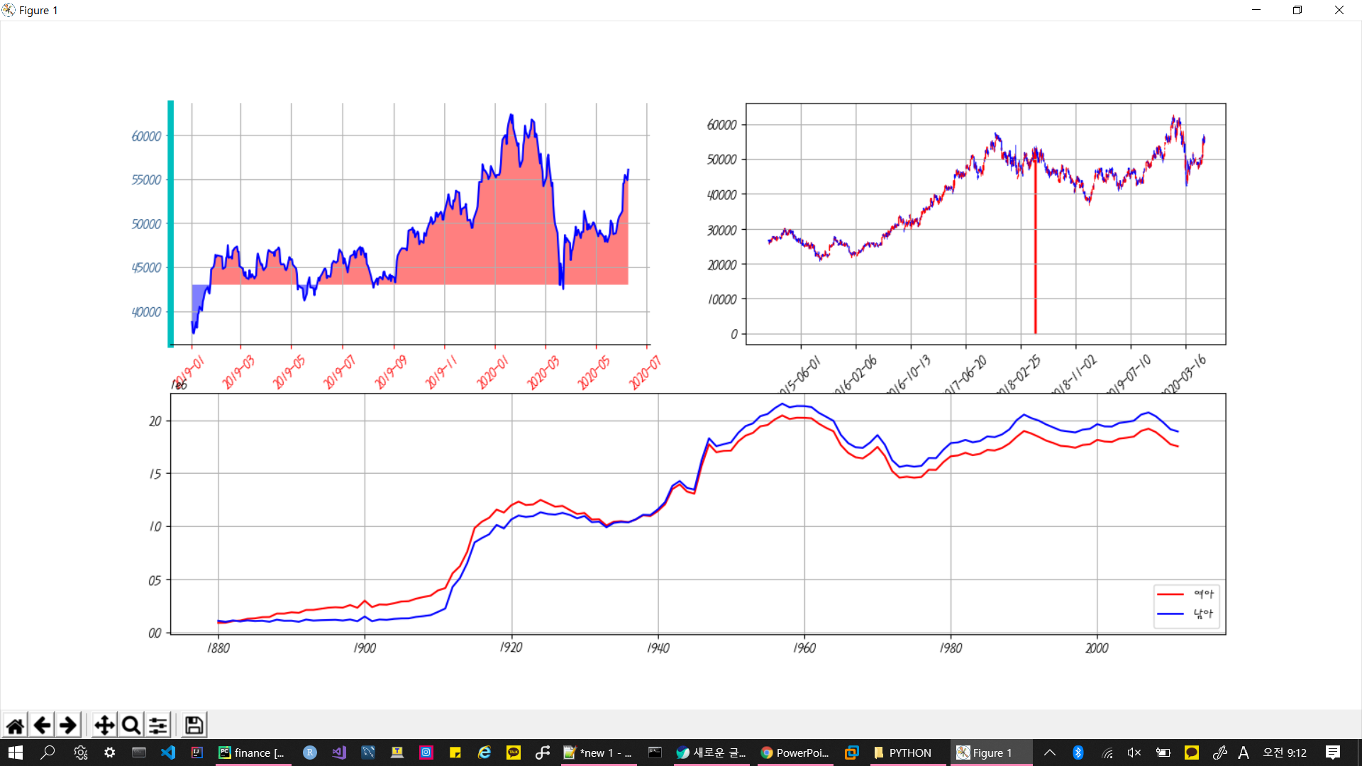 ax3.plot(x,y2,'-',color='b',label='남아')