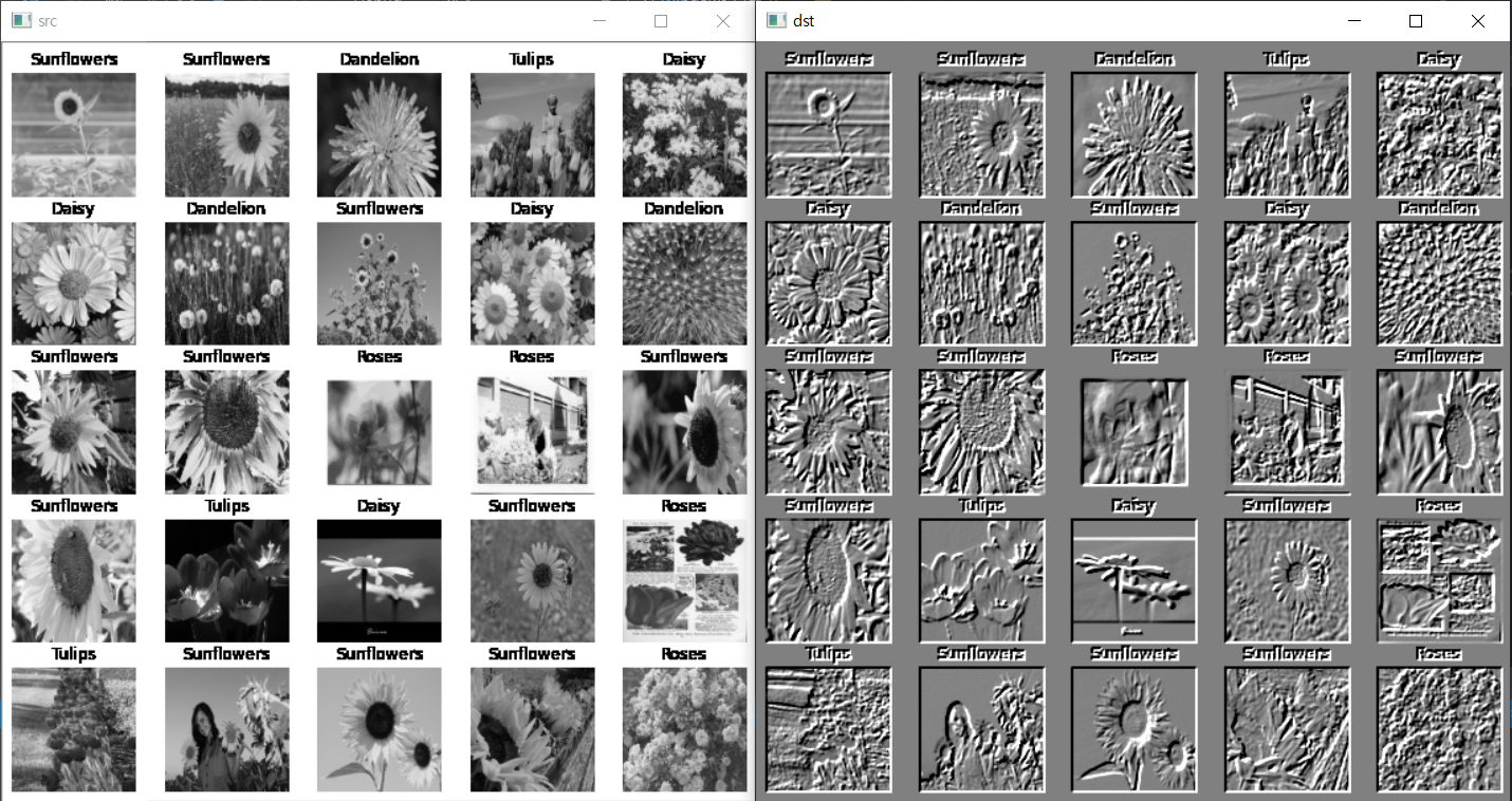 filter2D(src, dst, -1, emboss, Point(-1, -1), 128);