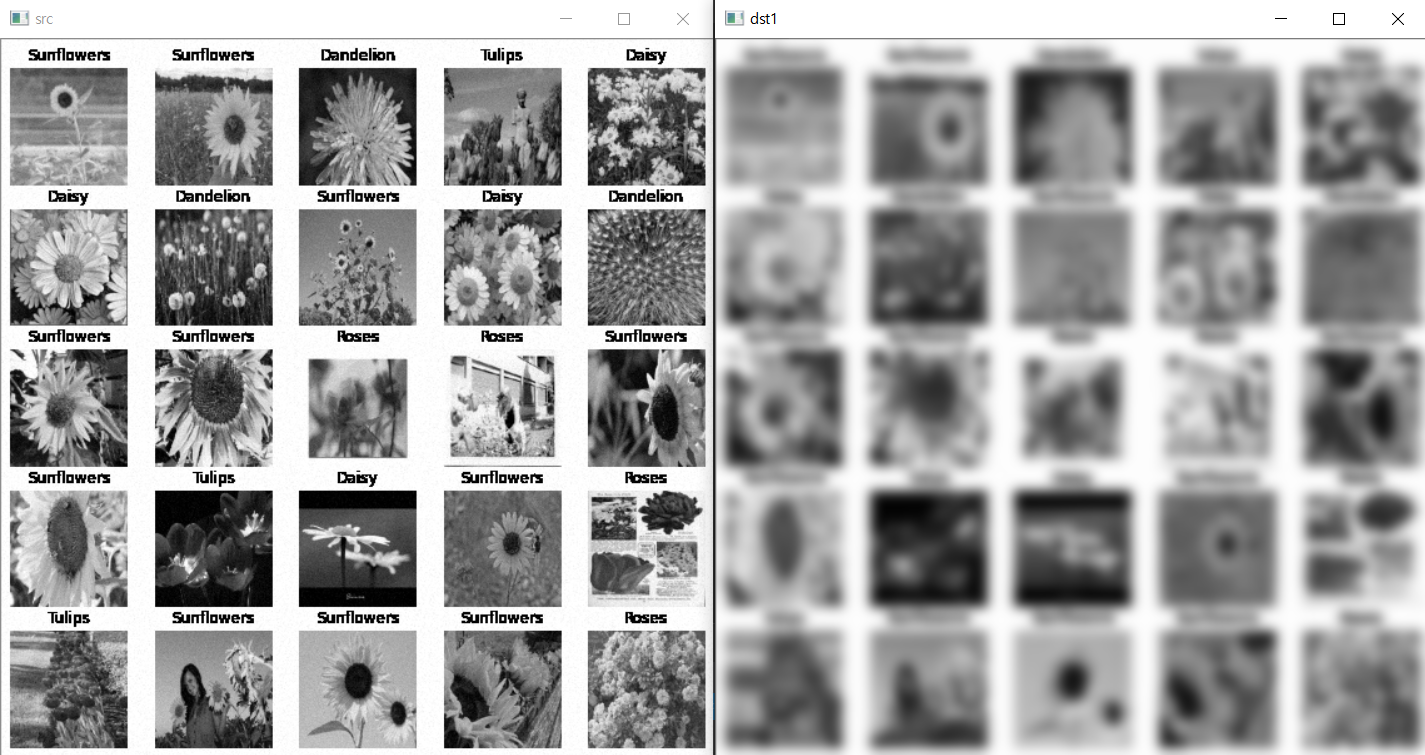 GaussianBlur(src, dst1, Size(), 5);