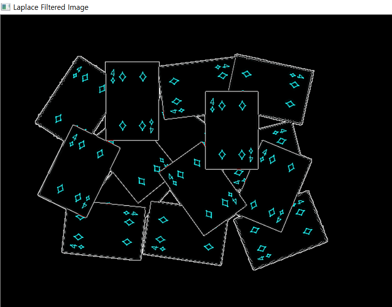 imgLaplacian = cv.filter2D(src, cv.CV_32F, kernel)