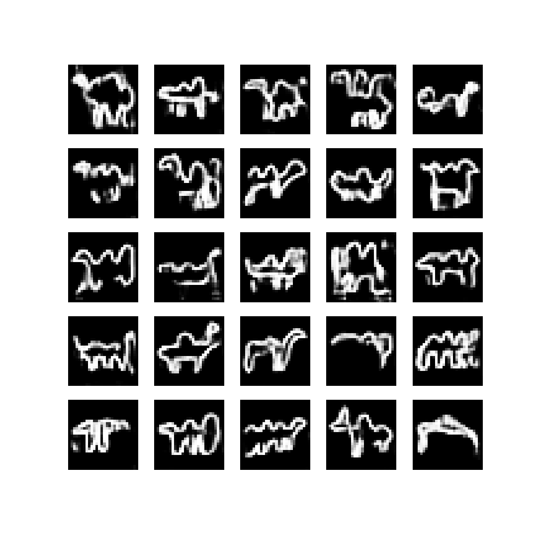 25 [D loss: (0.693)(R 0.692, F 0.695)] [D acc: (0.453)(0.906, 0.000)] [G loss: 0.693] [G acc: 0.828]