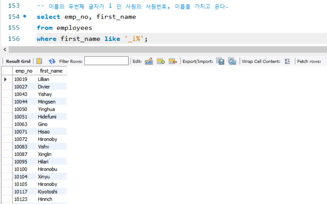 like는 이를 보다 확장해서 조건을 만들어 줄 때 사용한다.