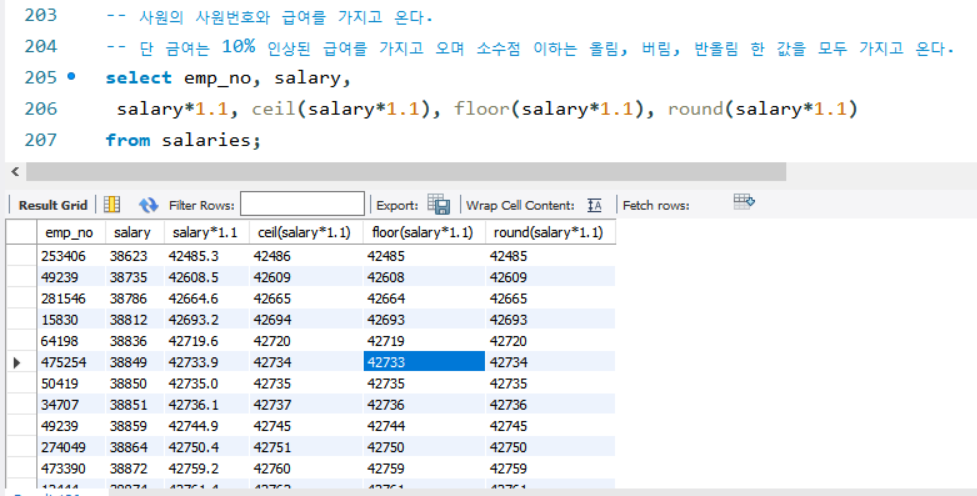 | FLOOR(숫자) | 값보다 작은 정수 중 가장 큰 정수(소숫점 이하 버림) |