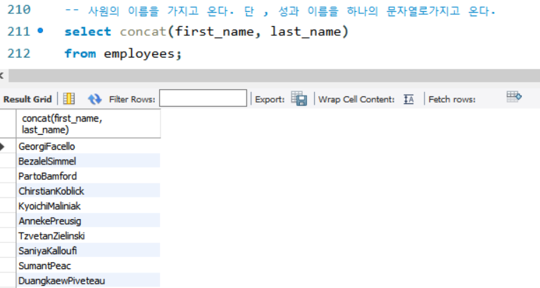 | concat(문자열1, 문자열2, 문자열3) | 문자열을 합친다 |