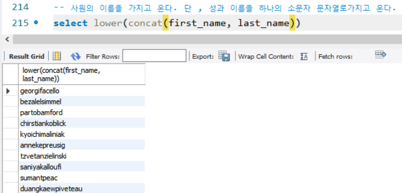| lcase(문자열),lower(문자열) | 문자열을 모두 소문자로 변경 |