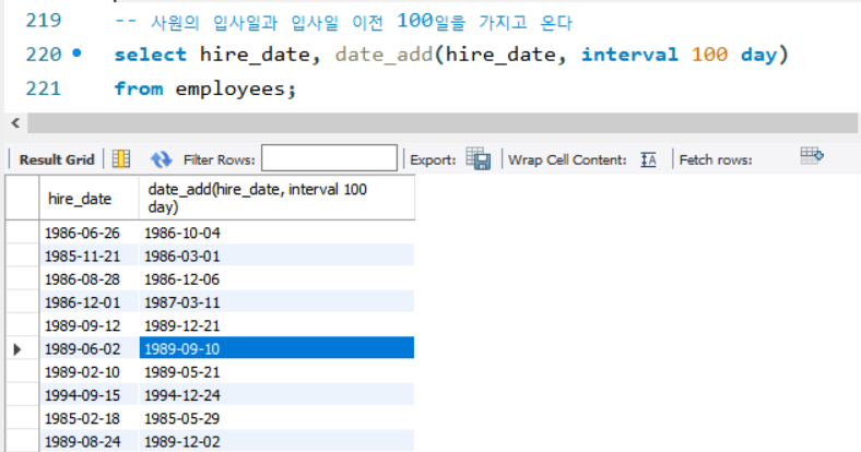 date add(날짜, interval 기준값) | 날짜에서 기준값 만큼 더함 (year, month, day, hour, minute, second) |