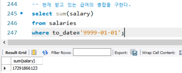 | sum(컬럼명) | 가져온 로우의 해당 컬럼에 저장된 값의 총합을 반환 |
