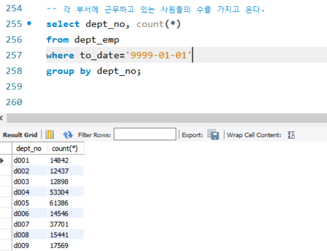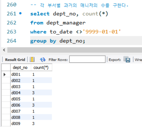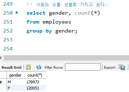 group by 절을 이용해 그룹으로 나눈 후 그 그룹 함수를 사용하면 각 그룹내에서 로우의 수, 총합, 최대, 최저 값을 구할 수 있다.