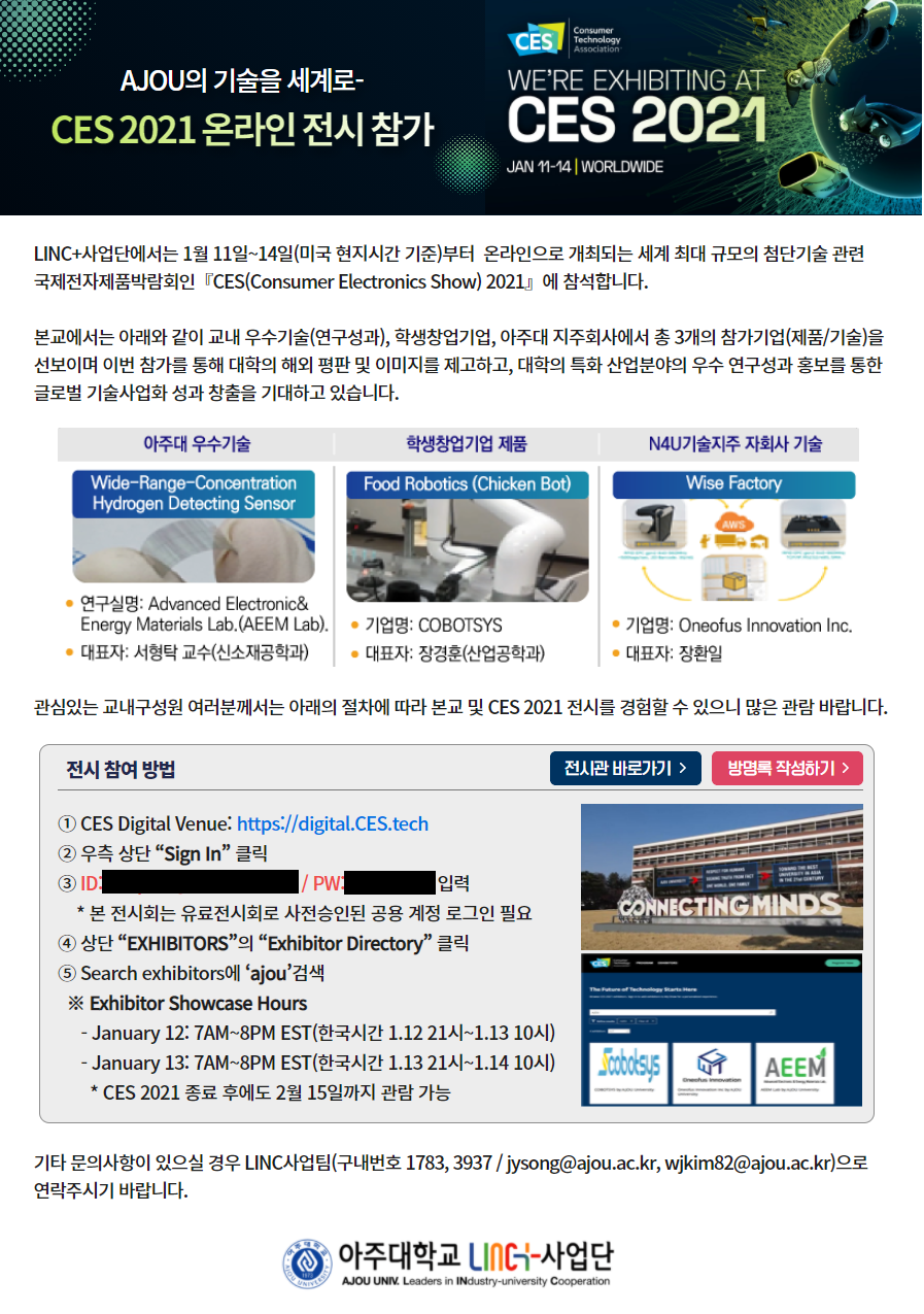 첨단기술 한자리 CES 2021에 아주대 3개팀 참가 | 아주대학교
