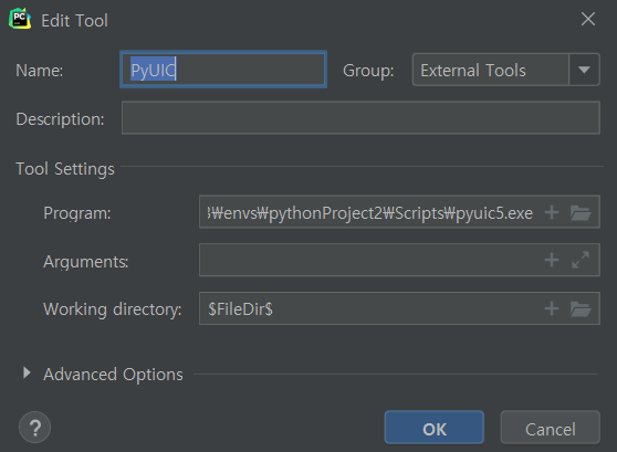 Program : <pyuic5.exe with it's path>