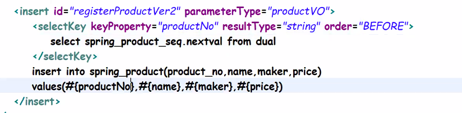 param.productNo 값 넣고 insert 본문