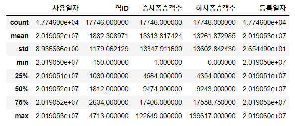 data =pd.read_csv('CARD_SUBWAY_MONTH_201905.txt')