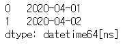 ser=pd.Series(['2020-4-1','2020-4-2'])