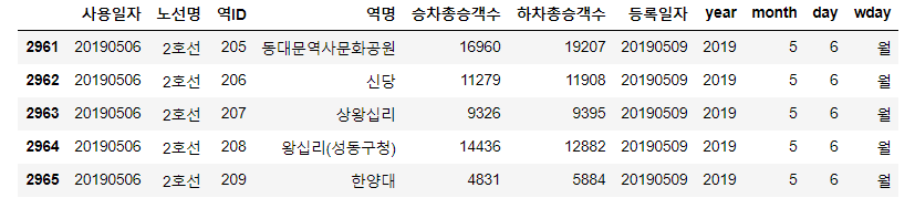 theday=pd.to_datetime(data2.사용일자,format='%Y%m%d')