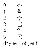 s.map({0:'월',1:'화',2:'수',3:'목',4:'금',5:'토',6:'일'})