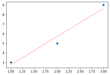 plt.plot(x,model.predict(x.reshape(-1,1)).ravel(),'r:')