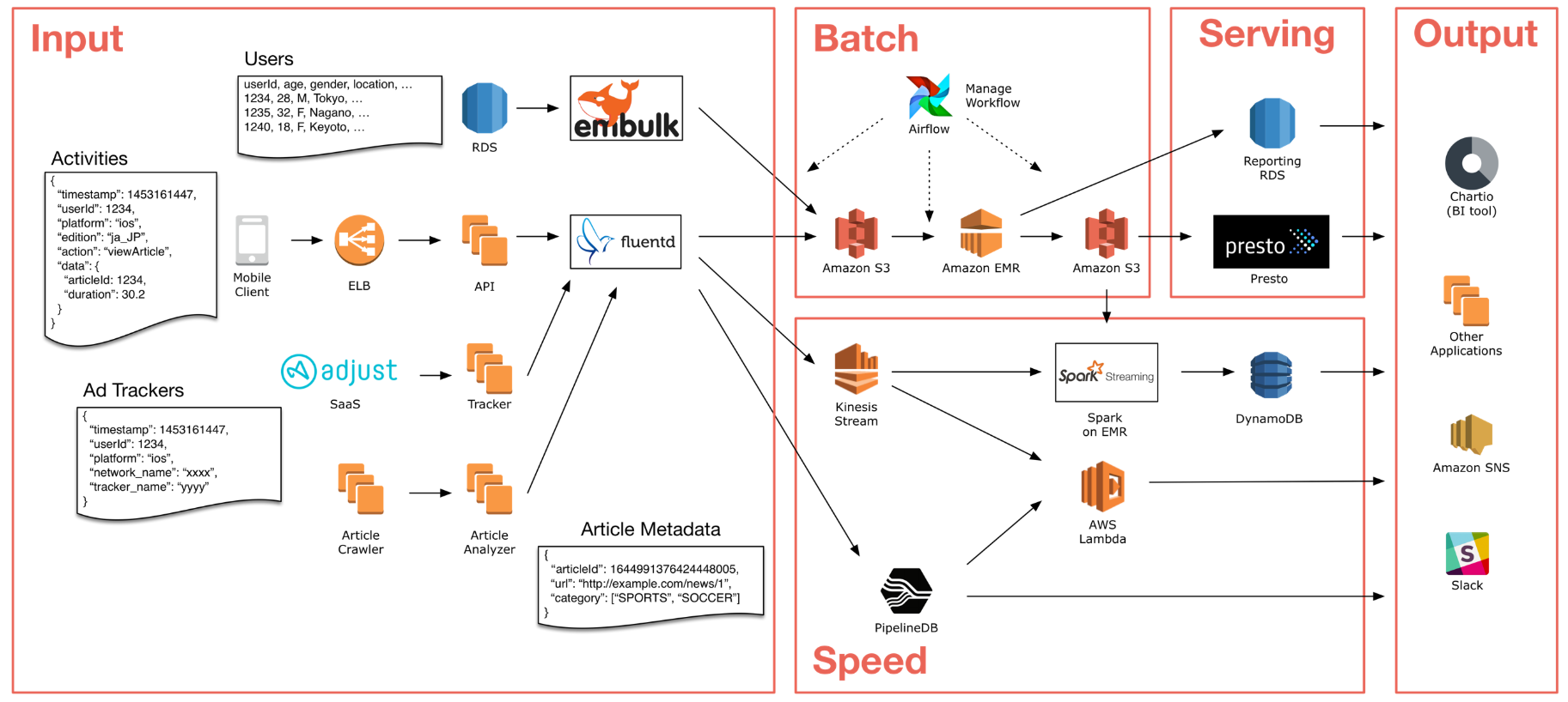 [BIG DATA]/Big data big data architecture case study givemebro 2020. 5. 15. 15:01 반응형 https://aws.amazon.com/ko/blogs/big-data/how-smartnews-built-a-lambda-architecture-on-aws-to-analyze-customer-behavior-and-recommend-content/ How SmartNews Built a Lambda Architecture on AWS to Analyze Customer Behavior and Recommend Content | Amazon Web Services This is a guest post by Takumi Sakamoto, a software engineer at SmartNews. SmartNews in their own words: “SmartNews is a machine learning-based news discovery app that delivers the very best stories on the Web for more than 18 million users worldwide.” aws.amazon.com 반응형 저작자표시 (새창열림)